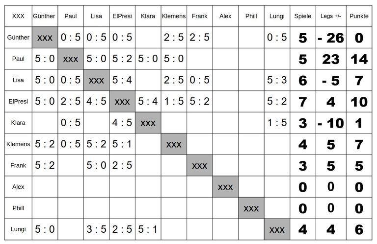 Einzig der Präsi konnte ihm bei seiner 2:5 Niederlage zwei Legs abluxxen!